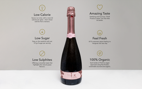 ThinK Pink is a Pinot Grigio Sparkling Rosé. It is a vegan and organic sparkling wine with both reduced sugar and calories. ThinK Pink is made from the finest Pinot Grigio grapes from the heart of Treviso, North-East Italy. We have developed a Pinot Grigio Sparkling Rosé that is fresh, satisfying and luxurious. ThinK Pink tastes ‘just that little bit better’.